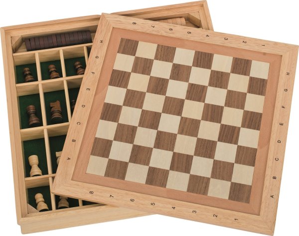 Dřevěná sada populárních stolních her v pevném dřevěném balení . Najdete tu šachy, dámu a mlýn. Hry jsou tu včetně návodů. Pořiďte si tento skladný a zábavný set pro spoustu zábavy! Rozměry šachovnice: 34 x 34 cm, velikost pole 3 x 3 cm, výška krále 6,5 cm Vhodné pro děti od 7 let. GOKI patří mezi nejvýznamnější evropské výrobce hraček s vysokou pedagogickou a didaktickou kvalitou. Firma klade důraz na bezpečnost hraček, jejich zdravotní nezávadnost a dbá na obnovitelné zdroje. Dřevo je bráno tam, kde může dorůstat. Používané dřeviny jsou javor, buk, ořech, lípa, jasan, borovice, bříza a gumovník. Barvy a laky pocházejí od menších výrobců.