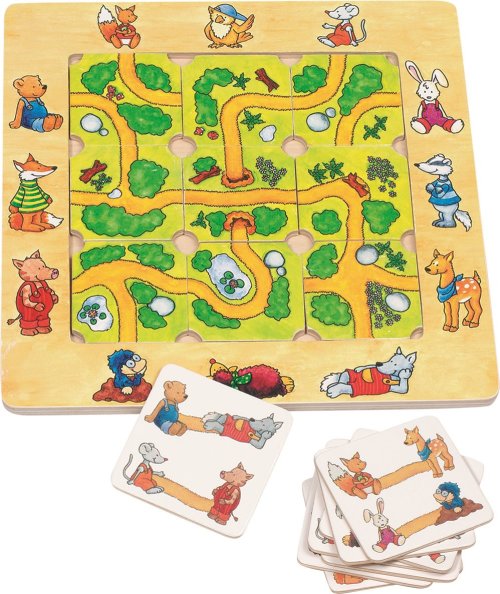 Celkem 12 zvířátek žije ve velkém lese a moc se spolu nevídají. Les je hluboký a nedá se jím snadno projít. Vytvořte zvířátkům cestu, aby se mohly navštěvovat. Vyrobeno ze dřeva. Rozměry hrací desky: 21 x 21 x 0,7 cm . Obsahuje: základní hrací desku se zvířátky, 9 karet s cestami, 20 hracích karet, návod. GOKI patří mezi nejvýznamnější evropské výrobce hraček s vysokou pedagogickou a didaktickou kvalitou. Firma klade důraz na bezpečnost hraček, jejich zdravotní nezávadnost a dbá na obnovitelné zdroje. Dřevo je bráno tam, kde může dorůstat. Používané dřeviny jsou javor, buk, ořech, lípa, jasan, borovice, bříza a gumovník. Barvy a laky pocházejí od menších výrobců.