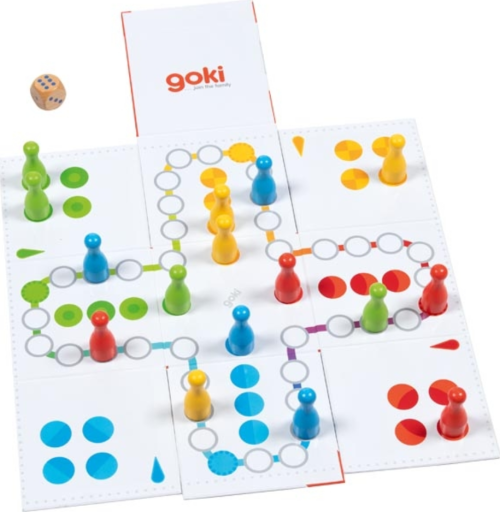 oblíbená stolní hra schovaná v kostce, kterou snadno vezmete kamkoliv s sebou otevřením kostky vznikne hrací pole o velikosti 45x45cm, na kterém si zahrajete stolní hru součástí jsou figurky také v XXL verzi, které lze snadno uchopit a jsou tak vhodné i pro malé dětské ručičky hrací pole je vyrobeno z kvalitního kartonu a figurky s kostkou jsou vyrobeny ze dřeva
