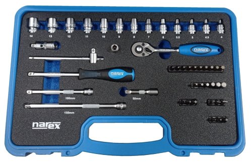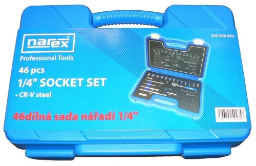 46dílná gola sada šestihranných hlavic 1/4" s povrchovou úpravou matný chrom - micro satin v plastovém kufříku. Nástavce jsou opatřeny vroubkovanou částí pro pohodlnou manipulaci při práci. Sada je určena výhradně pro ruční použití.