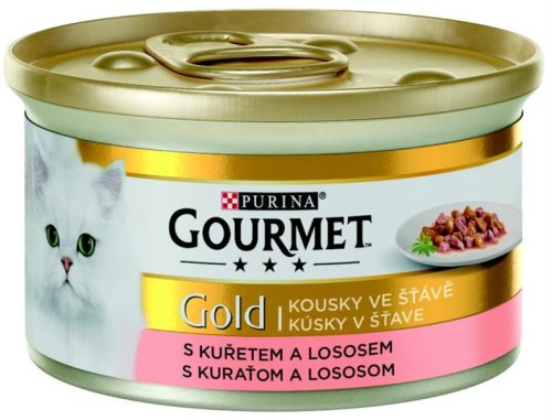 Kousky ve vlastní šťávě s lososem a kuřecím. Dávkování: Dospělou kočku o průměrné hmotnosti 4 kg krmte přibližně třemi konzervami denně, nejlépe ve dvou samostatných krmných dávkách. Individuální potřeby se mohou lišit a krmnou dávku je proto nutné přizpůsobit tak, aby si vaše kočka udržela optimální hmotnost. Březí a kojící kočky krmte dle jejich potřeby. Podávejte při pokojové teplotě. Čerstvá čistá voda by měla být vždy k dispozici.