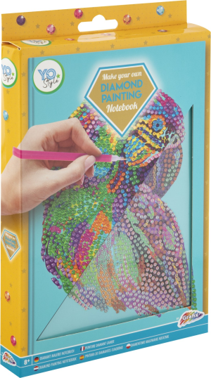 Blok A5 s tvrdými deskami s originální výzdobou pomocí barevných kamínků. Relaxace a třpytivý výsledek to v sobě snoubí diamantové obrázky. Postup: