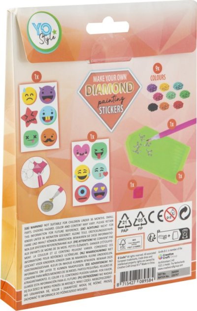 12 samolepek s motivy různých druhů ovoce. V sadě najdete vše potřebné - barevné kamínky, aplikátor, vosk i misku. Pomocí aplikačního pera nanášíte kamínek za kamínkem na označená místa na samolepkách. Nejsou potřeba žádné umělecké schopnosti.