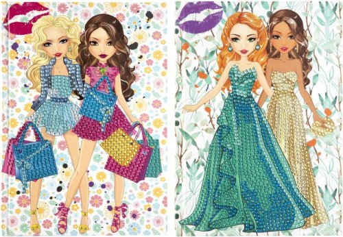 Kreativní sada pro ozdobení bloku s motivy dívek pomocí kamínků.