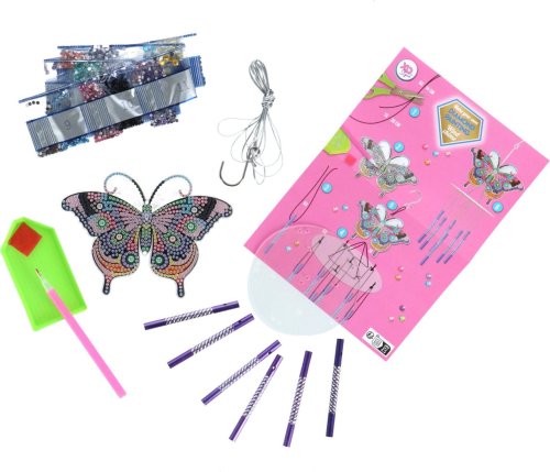 Balení obsahuje: zvonkohru, pero na aplikaci kamínků, miska na vysypání kamínků, vosk na nalepení, sadu barevných kamínků Diamantové malování - postup: Zvonkohra je potažena lepidlem a překrytá průhlednou folií. Kamínky požadované barvy vysypejte do misky. Do hrotu pera naberte vosk, díky kterému se kamínky snadno přichytí na pero, a nanášejte na obrázek.