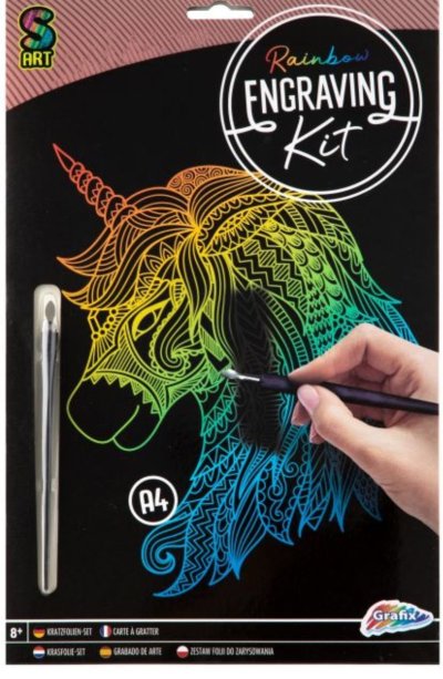 Zábava s barevným koncem! Škrabací obrázky probouzí kreativitu a nadšení a nejen malé výtvarníky zaměstnají na dlouhé hodiny. Papír potažený černou vrstvou překrývá podklad s duhovým efektem. Přiloženým škrabacím perem vyškrábejte linky předtištěného obrázku. Fantazii se meze nekladou, proto je možné vyškrábat i černá místa bez potisku a dodat obrázku osobitý rámeček. Obsah balení: