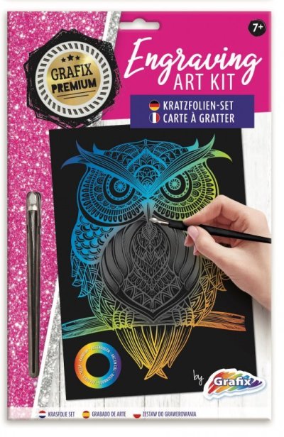 Vhodné pro děti od 7 let. Škrabací pero má ostrý hrot, u malých dětí je proto vhodný dohled dospělé osoby.
