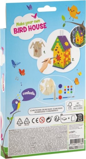 Sada na výrobu dřevěné budky pro ptáčky může zdobit tvoji zahradu nebo třeba balkon. Podle přiloženého obrázkového návodu sestav (klidně za pomoci tatínka nebo maminky) budku. Pak už se můžeš pustit do zdobení, použij přiložené barvičky a štětec, jen ať je domeček pro ptáčky pěkně barevný. Bude to zábava a výsledek bude stát určitě zato!
