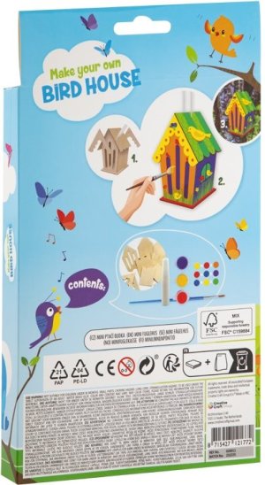 Sada na výrobu dřevěné budky pro ptáčky může zdobit tvoji zahradu nebo třeba balkon. Podle přiloženého obrázkového návodu sestav (klidně za pomoci tatínka nebo maminky) budku. Pak už se můžeš pustit do zdobení, použij přiložené barvičky a štětec, jen ať je domeček pro ptáčky pěkně barevný. Bude to zábava a výsledek bude stát určitě zato!