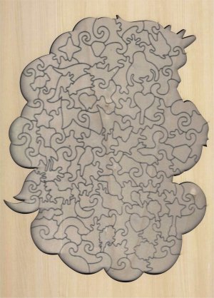 Dřevěné obrysové puzzle s různě tvarovanými dílky včetně podkladové desky vhodné pro děti i dospělé