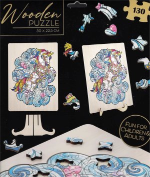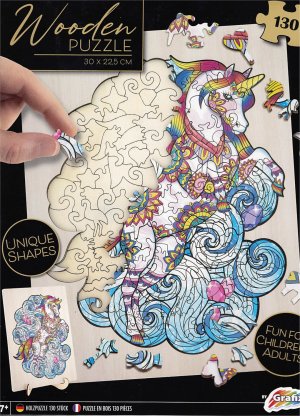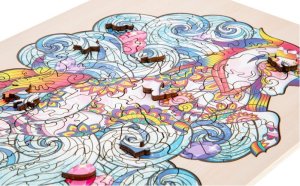 část dílků je ve tvaru zvířátek a předmětů na podkladové desce jsou patrné obrysy dílků puzzle je možné skládat na desce i bez desky (větší obtížnost) součástí balení je i praktický stojánek pro vystavení hotového obrázku