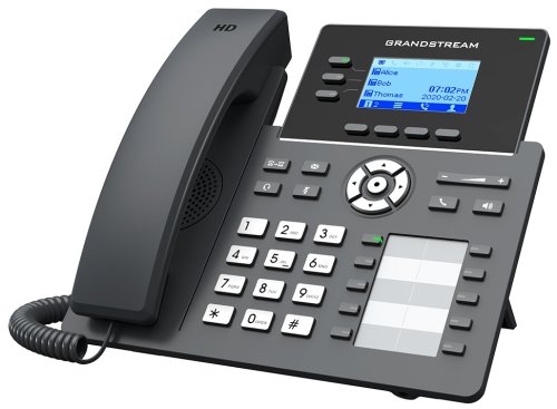 Základní 3linkový IP telefon navržený pro hromadné nasazení a snadný management. Vyznačuje se elegantním designem s vyměnitelným čelním panelem pro snadné přizpůsobení loga a sadou funkcí nové generace, včetně 5cestné audiokonference, integrovaného PoE napájení, 10 BLF tlačítek pro rychlé volby či podporou EHS pro náhlavní soupravy Plantronics, Jabra a Sennheiser. Telefonní seznam pojme až 2000 záznamů a seznam historie volání až 800 záznamů. Pro poskytování cloudových služeb a centralizovanou správu je telefon podporován systémem Grandstream’s Device Management System (GDMS), který poskytuje centralizované rozhraní pro konfiguraci, provisoning, správu a monitorování nasazených koncových bodů. Napájecí adaptér není součástí balení.
