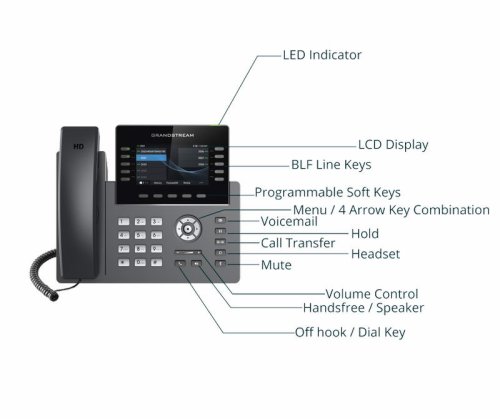 GRP2615 je IP telefon s 10 linkovými tlačítky z adaptabilní řady telefonů Grandstream, je navržený pro jednoduché hromadné nasazení a snadnou správu pomocí provisioningu. GRP2615 je vyroben pro potřeby zaneprázdněných desktopových pracovníků a pro snadné nasazení v podnicích, u poskytovatelů služeb a na dalších velkoobjemových trzích. GRP2615 je prvotřídní IP telefon s elegantním designem a sadou funkcí nové generace, včetně integrované Wi-Fi a Bluetooth, 40 víceúčelovými tlačítky (MPK), dvěma gigabitovými porty a dalšími. Toto zařízení je vybaveno velkým 4,3 palcovým barevným LCD displejem s vyměnitelnou čelní deskou, což umožňuje snadné přizpůsobení loga. GRP2615 lze nakonfigurovat pomocí systémem správy zařízení Grandstream (GDMS), který poskytuje centralizované rozhraní pro konfiguraci, provisioning, správu a sledování koncových bodů Grandstream.