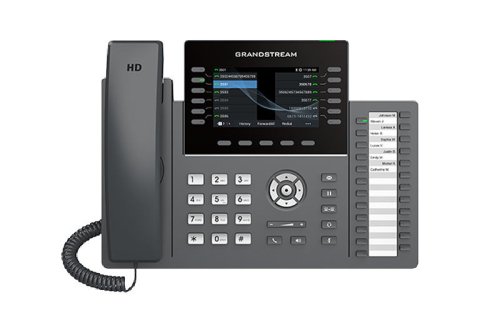 Hlavní parametry: 12 linek, 6 SIP účtů 24 víceúčelových tlačítek s papírovým štítkem 4.3" TFT barevný LCD 480x272 Konektor pro náhlavní soupravu RJ9, umožňující použití EHS s náhlavními soupravami Plantronics a integrovanou podporou USB náhlavních souprav Plně duplexní hlasitý odposlech s HD zvukem pro maximální kvalitu a čistotu zvuku Je vybaven noise shield technologií pro minimalizaci šumu v pozadí Dva gigabitového Ethernet porty 10/100/1000 Mb/s s integrovaným PoE Podporuje 5-cestné audiokonference pro snadné konferenční hovory Integrovaná dualband Wi-Fi 802.11 a/b/g/n/ac (2,4 GHz a 5 GHz) a Bluethooth Ochrana na úrovni Enterprise včetně secure boot, duálního image firmwaru a šifrovaného uložiště dat Vyměnitelná čelní deska umožňující přizpůsobení loga Podporováno GDMS, které poskytuje centralizované rozhraní pro konfiguraci, provisioning, správu a monitorování zařízení Grandstream