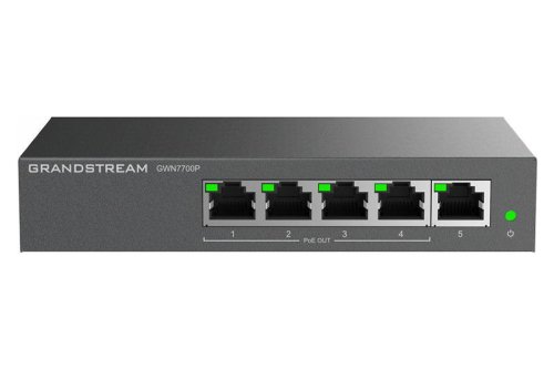 Grandstream GWN7700P je unmanaged síťový switch, který přináší rychlé a cenově dostupné řešení přidání vysokorychlostní gigabitové konektivity do domácích kanceláří a malých/středních podniků. Nevyžaduje žádnou konfiguraci ani instalaci, nabízí stolní a nástěnný design a poskytuje automatické MDI/MDIX aby se eliminovala potřeba křížených kabelů. Každý port podporuje automatické nastavení Ethernet komunikace, které umožňuje rozpoznat rychlost připojení libovolného síťového zařízení 10/100/1000 Mb/s a inteligentně se nastavit pro kompatibilitu a optimální výkon.