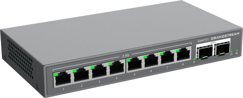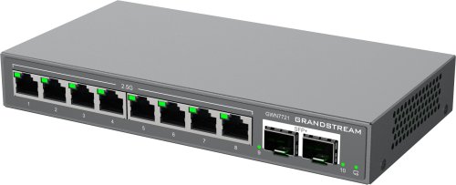 GWN7721 je 10portový managovatelný switch L2 Lite, vybavený 8x 2,5G ethernetovými porty a 2x 10gigabitovými SFP+ porty, vhodný pro malé a střední podniky pro budování škálovatelných, bezpečných a inteligentních sítí.