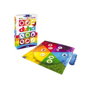 Duha přišla k nám! Máš zelenou? Mám! Znáš už barvy? Znám! Nová verze hry s duhovou hrací plochou a kolečky s obrázky v barvách duhy učí malé děti poznávat barvy a pojmenovávat věci či zvířátka. Starší děti si v této hře procvičují paměť při hledání „poslušných“ a „neposlušných“ kapiček. Návod v češtině i ve slovenštině. Oceněno titulem „Správná hračka“. Doporučováno Asociací klinických logopedů ČR. Může hrát i jedno dítě! Zajímavá hra s duhovou hrací plochou a kolečky s obrázky v barvách duhy patří do nové řady s názvem SMYSLY a je věnována barvám a zraku. Je určena pro 1 až 6 hráčů od 3 do 10 let. Učí malé děti poznávat barvy a pojmenovávat věci či zvířátka. Starší děti si v této hře při hledání „poslušných“ a „neposlušných“ koleček procvičují soustředění a paměť. Návod nabízí tři různé herní varianty. Oceněno titulem „Správná hračka“. Obsah balení: duhová hrací plocha36 koleček s obrázky (po šesti obrázcích v každé ze šesti barev)hrací kostka s barevnými puntíkyčeský a slovenský návod Hlavní vlastnosti: rozvíjí slovní zásobuprocvičuje koordinaci oko–rukarozvíjí pozorovací schopnosti i paměťpomáhá poznávat barvy a pojmenovávat věci či zvířátka Dokumentace: návod ke hře CZ Označení „Správná hračka“ je udělováno produktům, které cílí na děti předškolního věku a vynikají zejména výchovnými kvalitami, ale i vysokým standardem zpracování, komfortem používání a estetickou úrovní. Záměrem tvůrců ocenění je poskytovat vodítko a oslovovat rodiče i pedagogy, kteří chtějí ovlivňovat směřování nabídky a za prvořadý považují zdravý osobnostní rozvoj dětí. Tím chtějí tvůrci podněcovat k rozšiřování a vývoji nových hodnotných hraček či her. Označení je udělováno od roku 1994 a je společným projektem Sdružení pro hračku a hru, Asociace hračka Unie výtvarných umělců ČR a Asociace předškolní výchovy. Tato sdružení společně s Uměleckoprůmyslovým muzeem v Praze a Městským muzeem v Kamenici nad Lipou udělují ocenění při příležitosti festivalu Hračkobraní konajícího se každoročně od roku 2006 na zámku v Kamenici nad Lipou, kde můžete mimo jiné zhlédnout stálou expozici všech oceněných hraček.