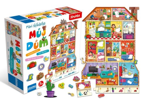 To je ale velký dům a pořád se v něm něco děje! Co právě dělá maminka a tatínek? A kde je zase ten kocour? Poskládejte skládačku, prohlédněte si sestavený obrázek, najděte na něm správný počet míčů, kaktusů, berušek a dalších věcí a doplňte na správná místa chybějící prvky. Se zábavnou a vzdělávací maxi skládačkou si děti osvojí základy počítání, rozvíjejí jemnou motoriku a koordinaci ruka-oko. Naučí se nová slova, rozšíří si slovní zásobu a zlepší komunikační dovednosti. Hlavní vlastnosti: rozvíjí jemnou motoriku a koordinaci ruka-okoučí počítánírozšiřuje slovní zásobu a zlepšuje komunikační dovednosti