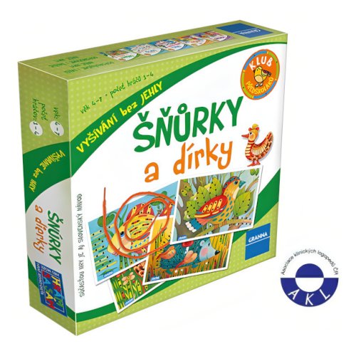 Provázek má zobáček, zahraje si na vláček. Jednou dírkou vjede tam, jinou zase zpátky, k barevným vás pozve hrám kouzelnými vrátky. Hra, při níž děti provlékají velké karty barevnými šňůrkami a vyšívají tak obrázky, zdokonaluje manuální zručnost, rozvíjí fantazii i estetické cítění a zároveň cvičí schopnost soustředění. Může hrát i jedno dítě! Vzdělávací hra z řady KLUB PŘEDŠKOLÁKŮ pro 1 až 4 hráče od 4 do 7 let v dětech probouzí estetické cítění a cit pro barvy i jejich správnou kombinaci. Zároveň zdokonaluje a procvičuje jemnou motoriku a schopnost soustředění. Děti provlékají otvory v kartičkách různobarevné šňůrky a vytvářejí tak obrázky, které mohou vypadat pokaždé trochu jinak. Vše závisí na fantazii dítěte. Obsah balení: 4 kartičky s obrázky k provlékání8 různobarevných šňůrekčeský a slovenský návod Hlavní vlastnosti: probouzí estetické cítění a cit pro barvyzdokonaluje manuální zručnostrozvíjí schopnost soustředění