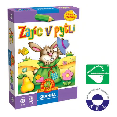 Je to zajíc, nebo hruška, či snad ryba, nebo tužka? Zkus to poznat v neobvyklé hře tvého kamaráda dráčka Fráčka! Hra rozvíjí představivost, slovní zásobu a schopnost rozeznávat věci hmatem – děti při hře například vytahují z pytlíku různé tvary, snaží se je hmatem rozpoznat, pojmenovat a najít obdobný obrázek na hrací ploše. Oceněno titulem „Správná hračka“. Může hrát i jedno dítě! Neobvyklá hra ze série HRY A LEGRÁCKY DRÁČKA FRÁČKA rozvíjí představivost, slovní zásobu a schopnost rozeznávat věci hmatem – děti totiž při hře například vytahují z pytlíku různé tvary, snaží se je hmatem rozpoznat a pak správně pojmenovat; v případě úspěchu pak ještě vyhledají obdobný obrázek na hrací ploše, aby na něj mohly umístit svou figurku. Hra umožňuje až tři herní varianty a je určena pro 1 až 6 hráčů ve věku od 3 do 8 let. Jako bonus je přiložena i sada nálepek a obrázek, na který si je děti mohou podle vlastní fantazie nalepit. Obsah balení: 9 oboustranných karet 27 obrázků30 figurek (po 5 figurkách v každé ze 6 barev)pytlíkčeský a slovenský návod Hlavní vlastnosti: rozvíjí představivost a slovní zásobuschopnost rozeznávat věci hmatemnávod v češtině i ve slovenštině Dokumentace: návod ke hře CZ návod ke hře SK Označení „Správná hračka“ je udělováno produktům, které cílí na děti předškolního věku a vynikají zejména výchovnými kvalitami, ale i vysokým standardem zpracování, komfortem používání a estetickou úrovní. Záměrem tvůrců ocenění je poskytovat vodítko a oslovovat rodiče i pedagogy, kteří chtějí ovlivňovat směřování nabídky a za prvořadý považují zdravý osobnostní rozvoj dětí. Tím chtějí tvůrci podněcovat k rozšiřování a vývoji nových hodnotných hraček či her. Označení je udělováno od roku 1994 a je společným projektem Sdružení pro hračku a hru, Asociace hračka Unie výtvarných umělců ČR a Asociace předškolní výchovy. Tato sdružení společně s Uměleckoprůmyslovým muzeem v Praze a Městským muzeem v Kamenici nad Lipou udělují ocenění při příležitosti festivalu Hračkobraní konajícího se každoročně od roku 2006 na zámku v Kamenici nad Lipou, kde můžete mimo jiné zhlédnout stálou expozici všech oceněných hraček.