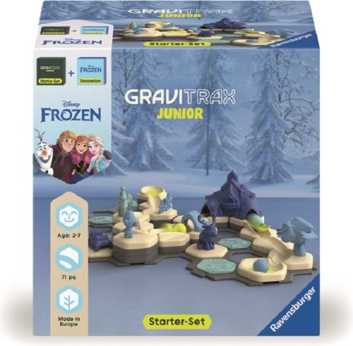 GraviTrax Junior je interaktivní systém kuličkové dráhy pro děti od 3 let. Ti nejmenší si staví své vlastní světy z kuličkových drah, které lze podle libosti zdobit a vytvářet tak jednotlivé tematické světy. Děti si tak při kreativním stavění užijí mnoho zábavy. Startovní set GraviTrax Junior Disney: Ledové království obsahuje různé herní figurky Anny, Elsy, Olafa, Svena a dekorační prvky, jako je ledový palác a spoustu dalších. Děti si tak sami mohou v rámci GraviTrax dráhy postavit a prozkoumat vlastní ledové království. Hra s figurkami a stavebními komponenty a zdobení tematických světů podporuje kreativní hraní rolí, představivost a jemnou motoriku. Spojuje se zde stavění a zábava při hraní. Všechny stavební a dekorační součásti jsou vyrobeny z dřevěného bioplastu. Bundle Disney: Ledové království obsahuje GraviTrax Junior Startovní sadu Start, která je ideálním vstupem do světa GraviTrax Junior, a rozšíření Disney: Ledové království obsahující herní prvky a dekorační figurky známé z Disney pohádky Ledové království.