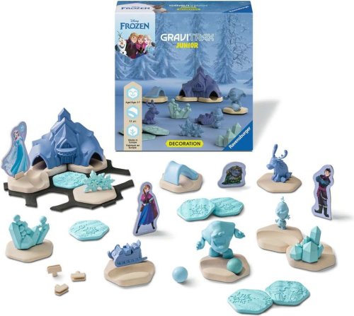 GraviTrax Junior je interaktivní systém kuličkové dráhy pro děti od 3 let. Ti nejmenší si staví své vlastní světy z kuličkových drah, které lze podle libosti zdobit a vytvářet tak jednotlivé tematické světy. Děti si tak při kreativním stavění užijí mnoho zábavy. Rozšíření Disney: Ledové království obsahuje různé herní figurky Anny, Elsy, Olafa, Svena a dekorační prvky, jako je ledový palác a spoustu dalších. Děti si tak sami mohou v rámci GraviTrax dráhy postavit a prozkoumat vlastní ledové království. Hra s figurkami a stavebními komponenty a zdobení tematických světů podporuje kreativní hraní rolí, představivost a jemnou motoriku. Spojuje se zde stavění a zábava při hraní. Všechny stavební a dekorační součásti jsou vyrobeny z dřevěného bioplastu. Rozšíření obsahuje 33 stavebních a dekoračních prvků.