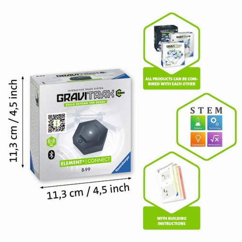 UPOZORNĚNÍ: Rozšiřující prvek GraviTrax Power Konektor je použitelný se startovací sadou. GraviTrax od německého výrobce Ravensburger je modulární kuličková dráha s možností dalších rozšíření, která nadchne malé i velké stavitele. Stavějte, závoďte s kuličkami a vyzkoušejte sílu gravitace v praxi! Propracovaná stavebnice s variabilními dílky Vám umožní vytvořit si vlastní systém spletitých kuličkových drah nebo postavit některé z předpřipravených řešení. Z jednotlivých stavebních prvků vytvoříte cestičky plné různých akcí, kterými budou kuličky postupně projíždět. Systém kuličkových drah RAVENSBURGER GraviTrax můžete libovolně rozšiřovat o další a další doplňky a vytvářet tak nové podoby složitých a unikátních cestiček s vytuněnými překážkami. Stavebnice zaručuje nikdy nekončící zábavu okořeněnou rozšiřováním vědomostí o vlastnostech gravitace. Plánujte dráhy odkudkoliv! S pomocí aplikace GraviTrax můžete dráhy navrhovat i na svém mobilu nebo tabletu a poté vše vyzkoušet v praxi.