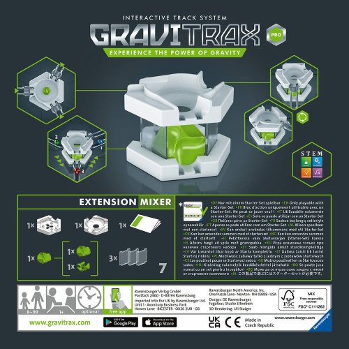 Jedna dráha, tolik možností. Zapojte Mixér do vaší dráhy a propojte tak rovnou dvě patra. Mixér oživí vaši dráhu rovnou několika způsoby. Kulička nejenže velmi rychle překoná přesun o patro níž, ale také se může rozjet až třemi různými směry. Každá jízda tak bude jedinečná.