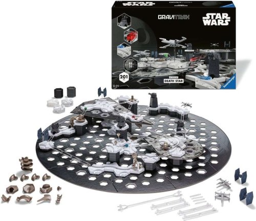 "GraviTrax Startovní sada Star Wars: Hvězda smrti - Zažijte epickou a velkolepou bitvu mezi dobrou a temnou stranou Hvězdných válek zblízka se systémem kuličkové dráhy GraviTrax. Akční vesmírné souboje ožívají s touto startovní sadou GraviTrax Star Wars: Hvězda smrti. Umožní vám objevit legendární střetnutí Impéria a Povstalců z Hvězdných válek. Díky prvkům a komponentům GraviTrax v exkluzivním designu Star Wars si můžete vytvořit vlastní vzrušující dráhy GraviTrax. V této sadě se základní deska GraviTrax představuje v působivém tvaru Hvězdy smrti, která do dráhy GraviTrax vnáší fascinaci a dobrodružství Hvězdných válek. Ponořte se do vzrušující galaxie plné akce a vzrušení. Ponořte se do fascinující galaxie Star Wars s prvky speciálně upravenými do podoby Star Wars. Výškové desky ve tvaru legendárních vesmírných lodí, zakřivené kostky s charakteristickými strukturami Hvězdy smrti a mnoho akčních prvků v nových barvách dělají z dráhy GraviTrax epické dobrodružství. Součástí stavebnice GraviTrax Star Wars: Hvězda smrti jsou exkluzivní figurky stíhaček X-Wing a TIE Fighter, které lze do dráhy dokonale začlenit. Vytvořte si vlastní epické momenty začleněním těchto ikonických vesmírných lodí do akčních kaskadérských kousků a triků na kuličkové dráze. GraviTrax je flexibilně rozšiřitelný interaktivní systém kuličkových drah pro děti od 8 let. Se stavebnicí GraviTrax si děti, teenageři i dospělí nestaví jen jednoduché kuličkové dráhy. Vytvářejí jedinečné světy kuličkových drah. Volným navrhováním kuličkových drah a zkoumáním chování kuliček na dráze se hravou formou seznamují s fyzikálními zákony. "