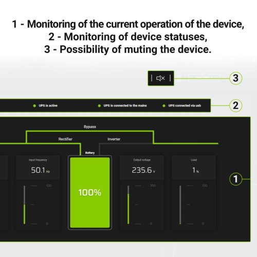 S celkovým výkonem 700W a zdánlivým výkonem 1000VA je UPS vybavena bateriemi Green Cell AGM, které poskytují stabilní parametry pro vaše zařízení.