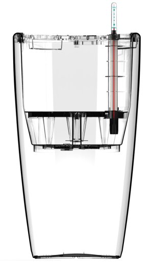Ukazatel úrovně hladiny ukazuje množství vody v sytému květináče. Díky němu přesně vidíte, kdy je třeba rostlinu zalít.