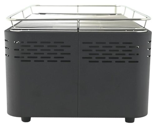 Gril je vybavený vestavěným větrákem, který výrazně urychlí zapálení dřevěného uhlí. Ovládání je snadné pomocí otočného knoflíku. Díky malé míře kouře je vhodný i pro použití na stole. Kvalitní ocelová konstrukce a kompaktní provedení z něj dělají spolehlivého parťáka pro každé grilování.