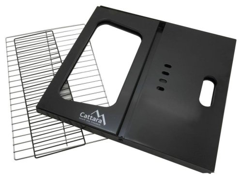 Na přední a zadní straně se nachází ventilace, která zajišťuje plynulý přísun vzduchu. Konstrukce grilu Cattara se vyrábí z kvalitní oceli s černým smaltovaným povrchem. Po sestavení je díky křížovému provedení velmi stabilní.