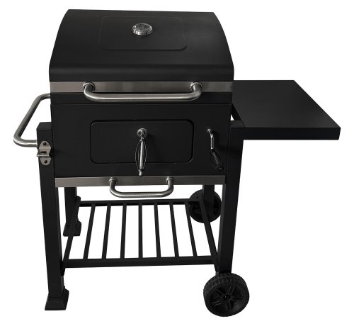 Velmi praktický a elegantní gril kufříkového tvaru pro snadnou přípravu grilovacích pokrmů. Uzavíratelné provedení umožňuje uzavřít spodní část grilu a díky tomu nemůže teplo tak rychle uniknout ven. Podobně jako v pečící troubě se pokrm propeče rovnoměrně ze všech stran. Speciální větrací otvory poskytují během grilování vyváženou cirkulaci vzduchu a zabrání vyhasnutí ohně. Klikou umístěnou v přední části grilu si snadno nastavíte výšku roštu. Gril můžete použít na grilování i bez víka jako klasický gril. Pomocí dvou plastových koleček dopravíte gril snadno na potřebné místo na vaší zahradě či terase. Komfort vám dopřejí i dvě odkládací plochy jedna výklopná v horní části se 4 nerezovými háčky na grilovací náčiní a druhá v dolní části grilu. Vychytávkou je otvírák na lahve připevněný na hraně grilu. Povrch grilu je opatřen žáruvzdornou barvou. Rozměry grilu: 117 x 67 x 108 cm.