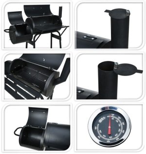 - oblíbený prostorný zahradní gril známý také pod názvem „Lokomotiva“- široké možnosti použití, ideální pro grilování, uzení, pečení, pomalé vaření i udržování teploty,..- tělo z oceli s černým ochranným žáruvzdorným nástřikem- obsahuje dvě topeniště a grilovací plochy, tzn. že můžete připravovat více druhů pokrmů v různé intenzitě žáru současně- hlavní grilovací prostor je rozdelěn na dva rošty, které lze pohodlně vyndat a lépe tak vyčistit- zavírací víko s rukojetí a velkým teploměrem v čele víka- kouřovod s krytem, který slouží zároveň jako přívěra vzduchu a zároveň chrání gril např. při dešti,..- stabilní robustní nohy zajistí, že gril stojí pevně a nekymácí se- 2 pojezdová kolečka a boční rukojeť pro jednoduché přemisťování- praktická odkládací plocha přímo v čele grilu- možnost použití dřeva, dřevěného uhlí nebo briket- celkové rozměry: 106 x 63 x 110 cm- rozměry grilovací plochy: 60 x 30 cm- výška grilovací plochy: 65 až 75 cm- váha: 13,5 kg- barva: černá- značka: PROGarden