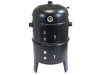 Multifunkční gril 3 v 1, s průměrem roštu 40 cm, ocení milovníci dobrého jídla. Gril 3 v 1 umožňuje udit, grilovat i opékat. Pokrm je tepelně připravován nad nádobou s vodní lázní pomocí tepla a dýmu. Tím nedochází ke vzniku zdraví škodlivých látek, které by se jinak dostávaly do pokrmů. Gril se skládá ze tří částí: ohniště, vyšší gril, uzavř. udírna. Dvě části mají dvířka pro přikládání a kontrolu ohně, vrchní část teploměr do 300 st. C, 2 tyče pro zavěšení uzených pokrmů a otvor pro vypouštění kouře.