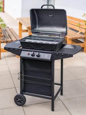 Velmi praktický a elegantní plynový gril KIMBERLEY se dvěma hořáky pro snadnou přípravu grilovaných pokrmů. Kvalitní provedení s poklopem umožňuje uzavřít spodní část grilu a díky tomu nemůže teplo tak rychle uniknout ven. Podobně jako v pečící troubě se pokrm propeče rovnoměrně ze všech stran. Gril má nahřívací mřížku vhodnou pro odkládání opečených potravin a nebo rozpékání pečiva. Gril můžete použít na grilování i bez víka. Pomocí dvou plastových koleček dopravíte gril snadno na potřebné místo na vaší zahradě či terase. Komfort vám dopřejí i dvě odkládací plochy se třemi háčky. Gril má teploměr v poklopu a přední odkládací košík. Gril se zapaluje pomocí piezo zapalování.