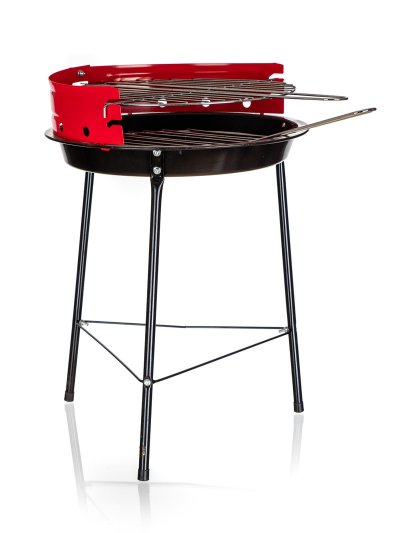 Gril TRIPOD je lehký gril se smaltovaným ohništěm, chromovaným roštem a zástěnou proti větru. Gril je dodáván v červené barvě. Gril využijete zejména při kempování, na chatách a chalupách.