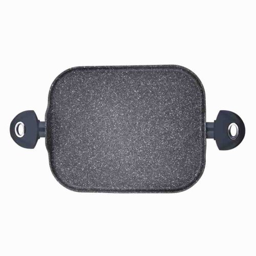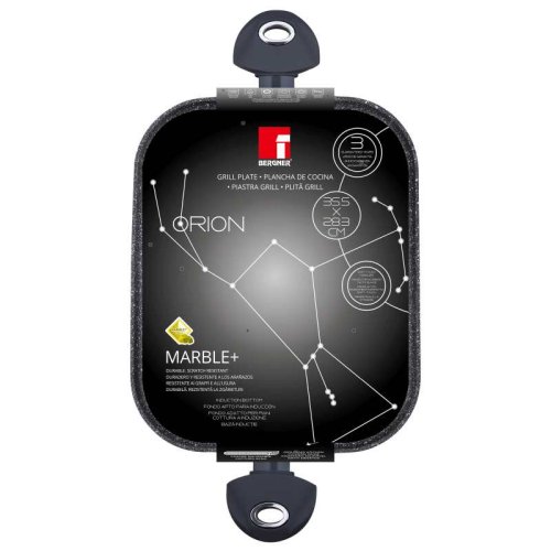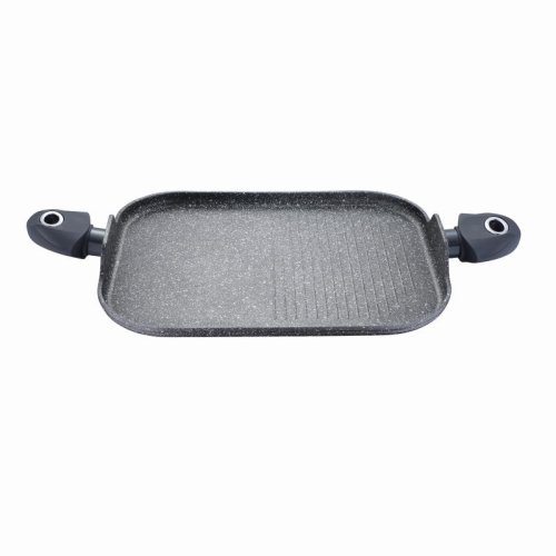 •Rozměry: 35,5 x 28,3 x 1,3 cm • Vyrobeno z prémiového kovaného hliníku pro lepší odolnost proti korozi a opotřebení. •Vnitřek grilu je vybaven nepřilnavým povrchem Marble, který zabraňuje přichycení jídla a zároveň zlepšuje vaření. •Gril má indukční základnu, která umožňuje dobré rozložení tepla po celém povrchu. Tato základna je kompatibilní se všemi varnými deskami na trhu, včetně indukce. • Šedé rukojeti s povrchovou úpravou Soft Touch a chromovou vložkou. • Možno mýt v myčce.Gril vyrobený z vysoce kvalitního kovaného hliníku, který rovnoměrně zlepšuje distribuci tepla a zabraňuje vzniku horkých míst. Bez obsahu PFOA, olova nebo kadmia. Vnitřní i vnější část kusu má mramorový povlak, který poskytuje kusu větší odolnost a odolnost proti poškrábání a zároveň umožňuje čištění pánve téměř bez námahy. Decentní a profesionální povrchová úprava a díky vnitřním žebrům připravíte maso a ryby jako na grilu. Základna grilu je opatřena indukčním dnem výjimečné tloušťky 3 mm, kompatibilním se všemi sporáky na trhu, včetně indukčních. Rukojeti v šedém provedení s hadím efektem mají technologii „soft touch“, která vám umožní pohodlně a bezpečně uchopit.