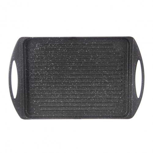 Grilovací deska vhodná pro grilování doma i venku. Vhodná na všechny typy spotřebičů včetně indukce, vhodná i do trouby a na grily. Hliníkový materiál s vynikajícím nepřilnavým povrchem PFLUON GRANIT a s profilovaným dnem. Při manipulaci používat kuchyňské chňapky. Rozměr 42 x 27 x 5.5 cm, rozměr celkové grilovací plochy 33 x 26 cm. Nikdy grilovací desku nevkládejte přímo do plamenů ohně, mohlo by dojít k deformaci či jinému poškození výrobku !!! EAN 8592381132699