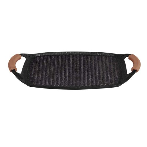 - rozměry: 47 x 29 cm­ materiál: tlakově litý hliník­ třívrstvý nepřilnavý povrch s mramorovým designem pro vaření s minimem tuku­ barva: černá / zlatá- TURBO indukční dno­ odnímatelné silikonové rukojeti­ …
