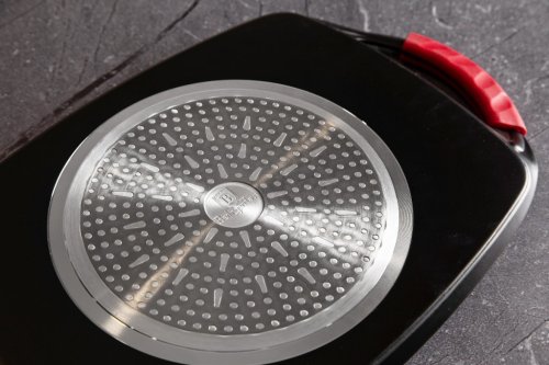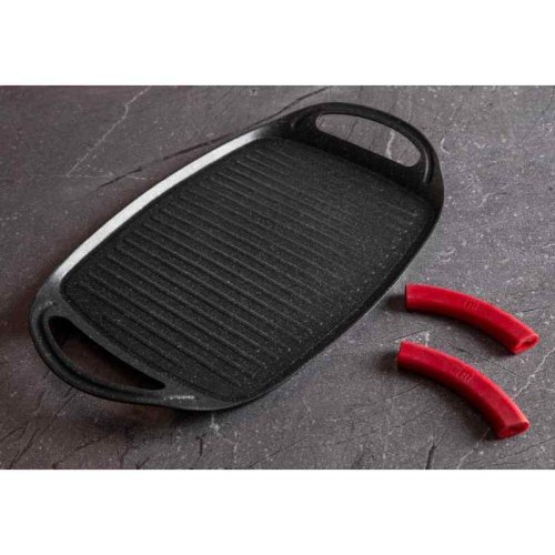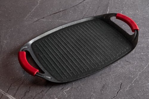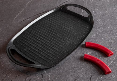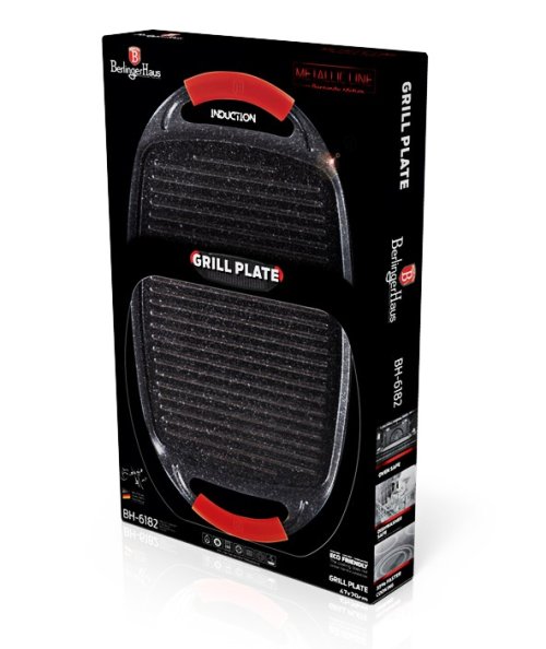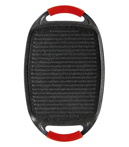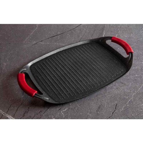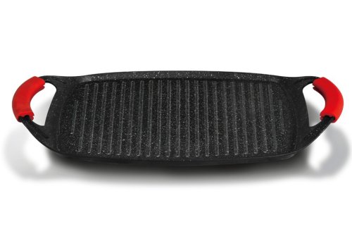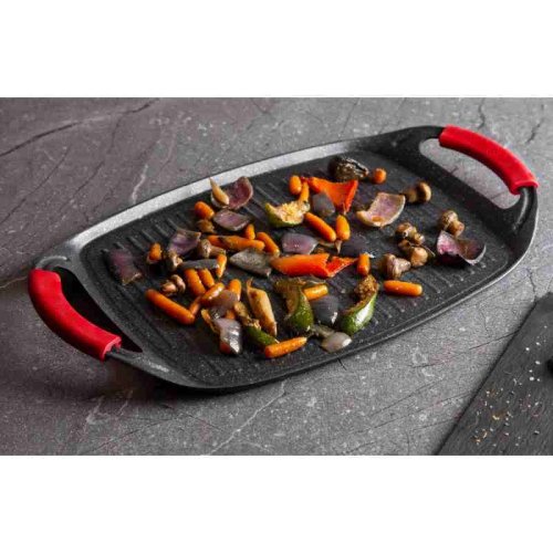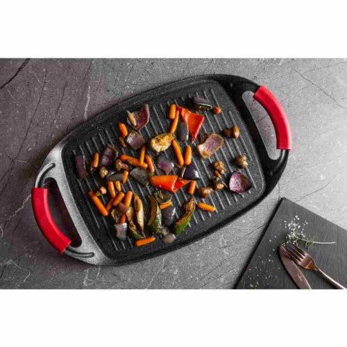 Grilovací deska z kolekce nádobí Burgundy Edition s mramorovým povrchem je perfektní ke grilování doma i venku. Použít lze na všechny druhy sporáků, v troubě, nebo venku na vašem grilu. Velmi efektní je také pro přímé servírování grilovaných specialit. Díky chytře vyřešeným rukojetím je manipulace pohodlnější a bezpečnější než u klasických tálů. Na desce je možné připravovat maso, zeleninu, ryby, klobásky, burgery, volská oka nebo i pizzu, díky mramorovému povrchu navíc s minimem tuku, ať už na sporáku, v troubě nebo na grilu.