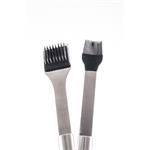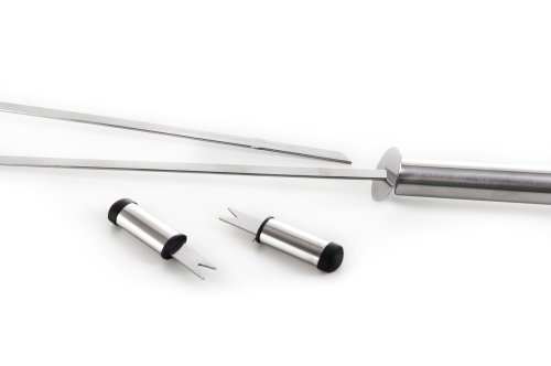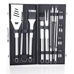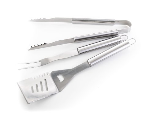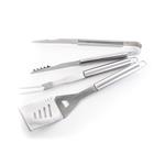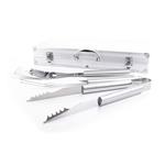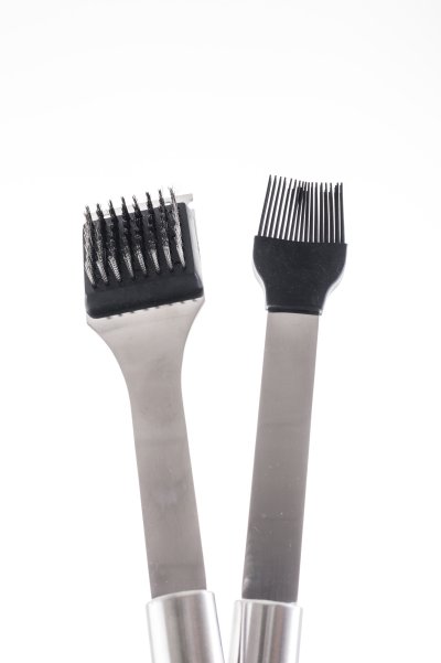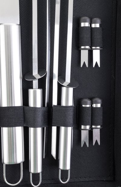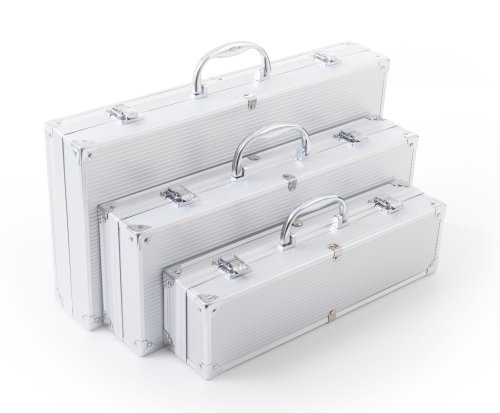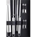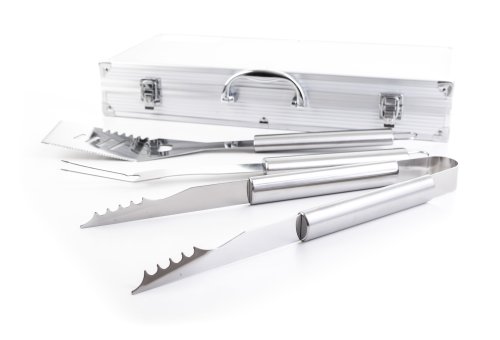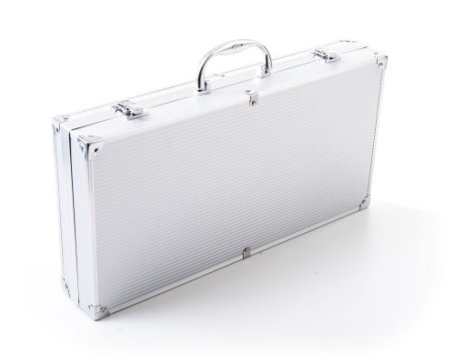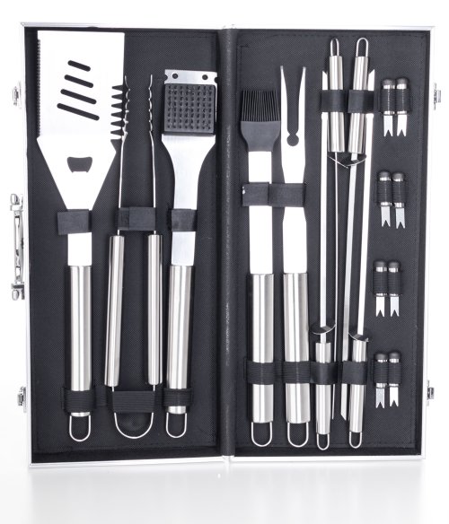 Sada obsahuje kompletní nástroje pro grilování bez potíží. Součástí sady je obracečka, vidlička, kleště, štětec na potírání, čistící kartáč, napichovátka pro snadné jedení klasů kukuřice a grilovací jehlice pro výrobu špízů. Délka nářadí 40 cm zajišťuje, že na vás při grilování nebudou šlehat plameny ani prskat olej z masa. Pro snadné přenášení a skladování je nářadí uloženo do praktického hliníkového kufru.