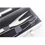 Sada obsahuje kompletní nástroje pro grilování bez potíží. Součástí sady je obracečka, vidlička a kleště o délce 34 cm. Pro snadné přenášení a skladování je nářadí uloženo do praktického hliníkového kufru.