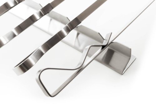 Naložte si maso, zeleninu nebo cokoliv, co chcete na grilovacích jehlách připravit. Poté jednotlivé kusy surovin napíchněte postupně na grilovací jehly, dokud nejsou plné. Stojan umístěte na rošt grilu a vložte do něj naplněné jehly. Postupně jehly na stojanu otáčejte, aby se vše grilovalo rovnoměrně ze všech stran. Po ugrilování jehly sundejte z grilu a můžete ihned servírovat. Dobrou chuť!