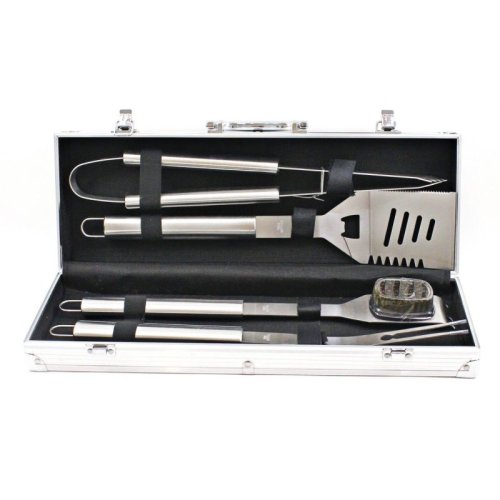 Pokud rádi grilujete, jistě potřebujete solidní nářadí ke grilu. Sada PROGARDEN obsahuje celkem 4 kusy náčiní z nerezové oceli. Všechny kousky jsou robustní s dlouhou rukojetí, takže se Vám bude náčiní dobře ovládat a nespálíte se. Grilovací obracečka je přizpůsobena k porcování masa a má v sobě zabudovaný otvírák na lahve. Celý set je uložen ve stříbrném přenosném kufříku. Díky pěknému balení v kufříku je sada velmi vhodným dárkem pro nadšence do grilování. Buďte připraveni, až začne grilovací sezóna. Sadu lze doplnit ještě o další příslušenství ke grilu od značky PROGarden. - materiál: nerezová ocel- robustní náčiní s dlouhou rukojetí- očko na zavěšení- kufřík s rukojetí se zavíráním na dva klipsy- sada obsahuje:- 1x kartáč / škrabku na čištění grilu 43 cm- 1x grilovací kleště 43 cm- 1x grilovací obracečku s otvírákem na lahve 43 cm- 1x porcovací vidličku 43 cm- 1x skladovací uzaviratelný kufřík s rukojetí 46 x 16 x 8 cm- značka: PROGarden