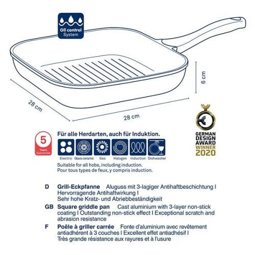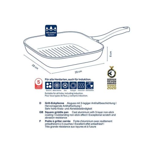 Hliník litý s nepřilnavým povrchem bakelitová rukojeť Soft Touch 28cmx28cm, 6cm v