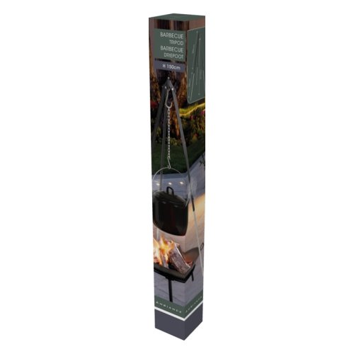 stojan na grilování na trojnožce, ocel, vnější trubka 20x20x1,5mm černá elektroforézní úprava, vnitřní trubka 15x15x1,5mm pozinkovaná, řetěz 36x20x5x525mm,výška shora dolů max. 150 cm , černá trubka 90 cm a stříbrná trubka 88 cm ; s háky, šrouby a maticemi pozinkovanými