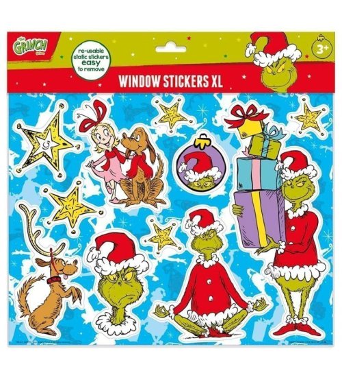 Opakovaně použitelné nálepky na okno Grinch. Obsah: 1 arch nálepek
