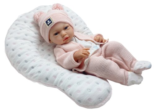 Panenka miminko bez zvuku s měkkým látkovým tělem. Ruce a nohy jsou k tělu přichyceny kloubem. Miminko je polohovací a může i sedět. Velikost 36 cm. Ručně vyrobeno ve Španělsku, baleno v dárkové krabici. Doporučený věk od 3 let.